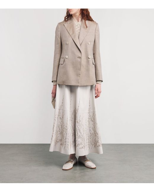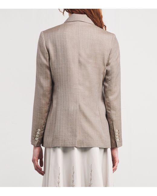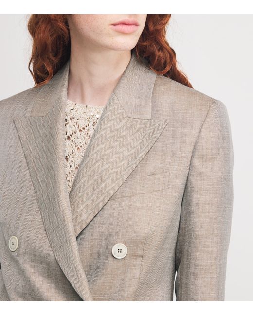 Women's Beige Wool-Silk-Linen Double-Breasted Blazer