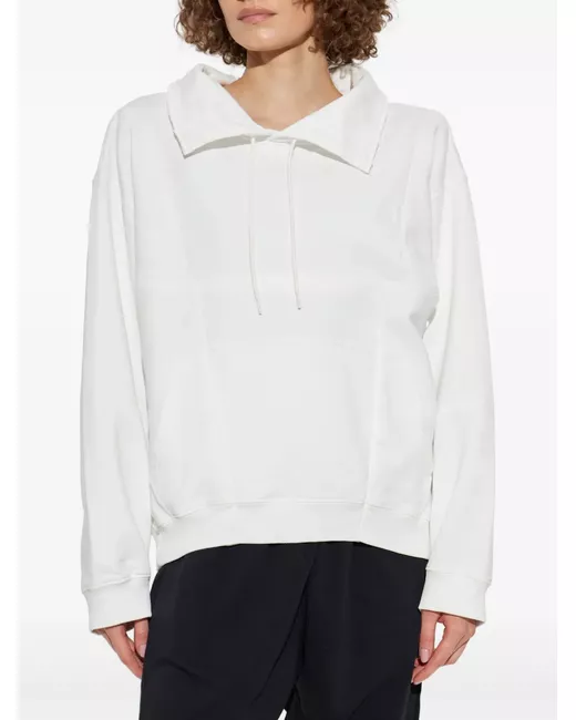 white spread collar adjustable drawstring front kangaroo pocket ribbed cuffs tonal logo embroidery