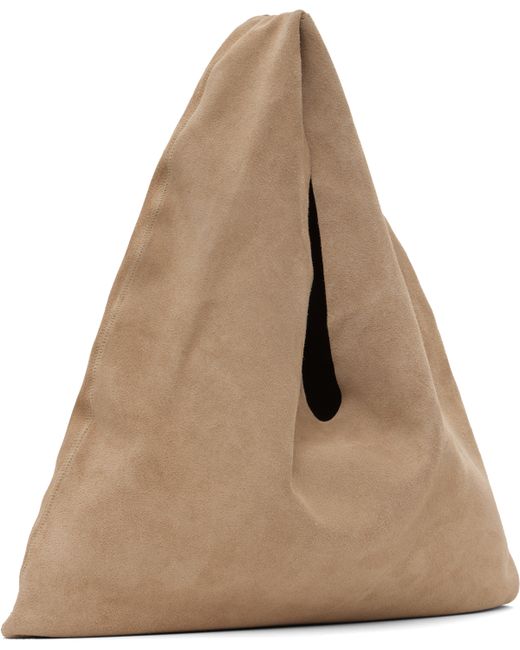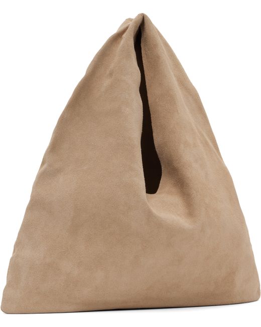 Calfskin suede tote in beige. · Integrated carry handle · Logo embossed at face · Open throat · H7 x W12 · Total height: H12 Supplier color: Beige melange