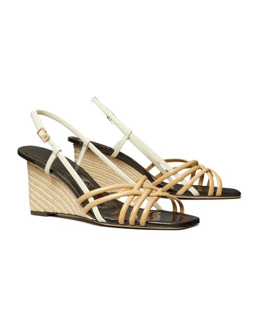 These Tory Burch sandals, crafted of leather, are detailed with multiple straps, a buckle closure, and a 75mm wedge heel. Open toe Buckle closure Leather upper Leather lining Rubber sole Imported SIZE Wedge heel: about 3" (75 mm) ABOUT THE BRAND Since debuting her brand in 2004, New York-based designer Tory Burch has made an impact on the fashion world with her handbags and shoes, and playful-yet-polished clothing. Today, Burch remains inspired by color and travel, with her vibrant collections bursting with prints, and her instantly recognizable double-T logo drawing from Moroccan architecture. Women's Shoes - Tory Burch Womens Shoes > Tory Burch > Saks Fifth Avenue > Barneys. Tory Burch. Color: Cantucci Light Cream. Size: 10.