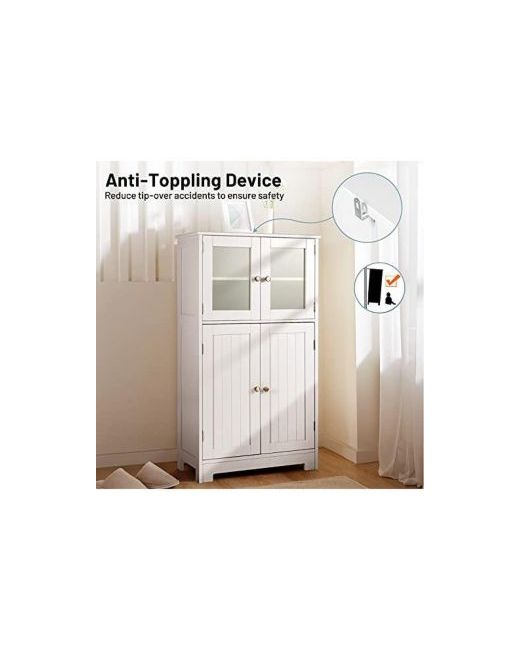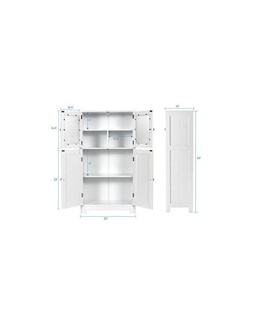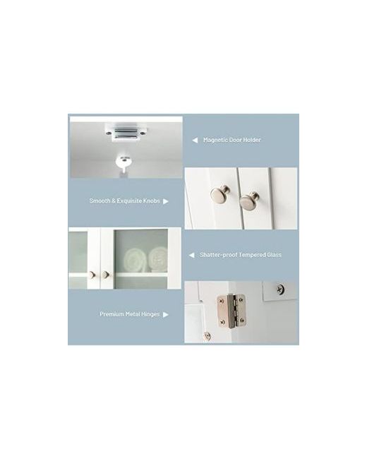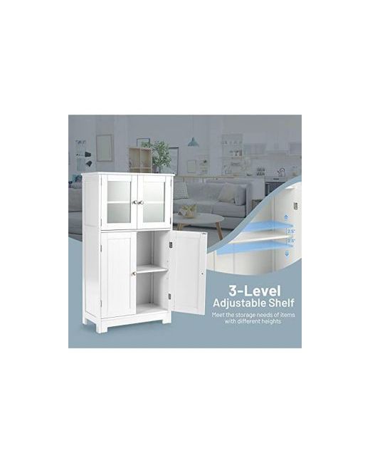 This 4-door floor cabinet features 5 storage compartments, an adjustable shelf, and tempered glass doors for versatile use. Crafted from durable Mdf, it adds style and storage to any room.