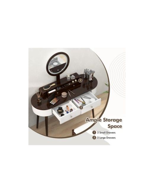 Brown Makeup Vanity Table Set with Led Mirror and 3 Spacious Drawers
