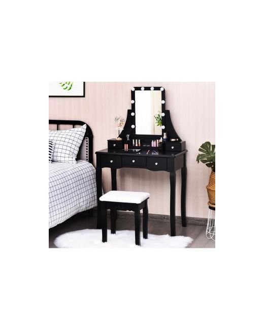 Elevate your beauty routine with this Led vanity set featuring 10 adjustable lights, 5 spacious drawers with dividers, and a cushioned stool. Solid wood legs ensure stability, while the smooth surface is easy to clean. Ideal for organizing cosmetics and daily essentials in style.