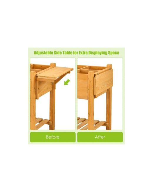 Made of natural fir wood with water paint, our raised planter bed ensures great durability for long-term use with minimum maintenance. The 8-grid shelf provides a separate area for growing different plants like herbs, flowers and vegetables. In addition, your gardening tools and accessories can be stored on the bottom shelf and foldable tabletop. More importantly, the user-friendly height of this planter can reduce stress on your back and knees during gardening work. The raised planter bed is designed with drainage holes to drain out excess water conveniently. In addition, the assembly is quite easy with detailed instruction.Features:Solid legs provide extra stability and strong weight capacityHigh quality fir wood is Sturdy enough for long time useAdequate planting area with 8 grids for different plantsUser-friendly height design for comfortable gardeningIdeal for your patio, garden, balcony, etc