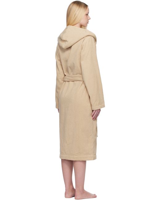 Heavyweight 385 gsm organic cotton terrycloth bathrobe. · Certified GOTS and OEKO-TEX® Standard 100 · Hood at shawl lapel · Open front · Belt loops and detachable self-tie belt · Patch pockets · Logo flag at side seam · Locker loop at inner collar Supplier color: Sienna