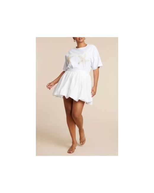 100% Cotton. Relaxed fit. Pull on, crew neck. Embroidered starfish patch. Short sleeve, dropped shoulder. Hits at the hip. Stretch knit jersey. Machine wash cold gentle cycle with like colors. Only non-chlorine bleach when needed. Do not tumble dry. Lay flat to dry. Cool iron as needed.