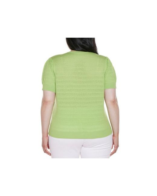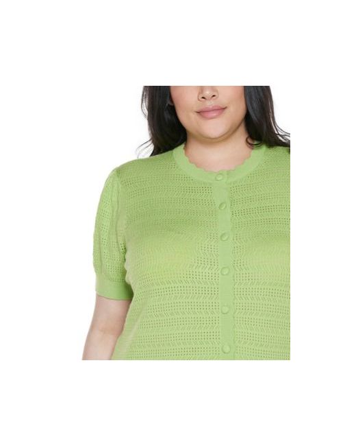 This versatile cardigan adds a flirty, feminine edge to any outfit with its short sleeves, pointelle knit, and scalloped detailing at the neckline and placket. Dress it up or down effortlessly.