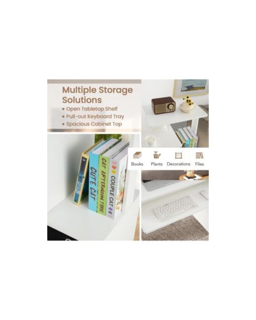 This 39.5" compact computer desk features a tabletop shelf, keyboard tray, and storage cabinet with a removable fabric drawer for smart organization. Built to last and adaptable for any need, its sleek design with rounded corners and non-slip foot pads makes it a stylish and safe choice for small spaces.