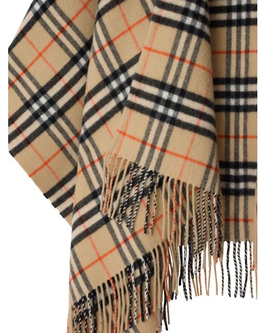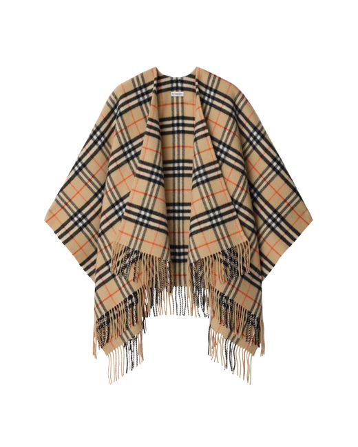 Crafted of wool-cashmere, Burberry's cape features a signature check pattern and a fringed trim. Collarless Long sleeves Open-front 90% wool/10% cashmere Dry clean Made in UK SIZE About 37.8"W x 76"L ABOUT THE BRAND Founded in 1856 by 21-year-old Thomas Burberry, the brand set out with a mission to stylishly protect against British weather-and Burberry's iconic trench coat was born. In the 1920s, its renowned check pattern was introduced as the coat's lining. Today, under Creative Director Daniel Lee, the heritage brand continues to evolve and create timelessly classic men's, women's and kids' pieces, along with beauty. Soft Accessories - Burberry Soft Accessorie > Burberry > Saks Fifth Avenue > Barneys. Burberry. Color: Sand.