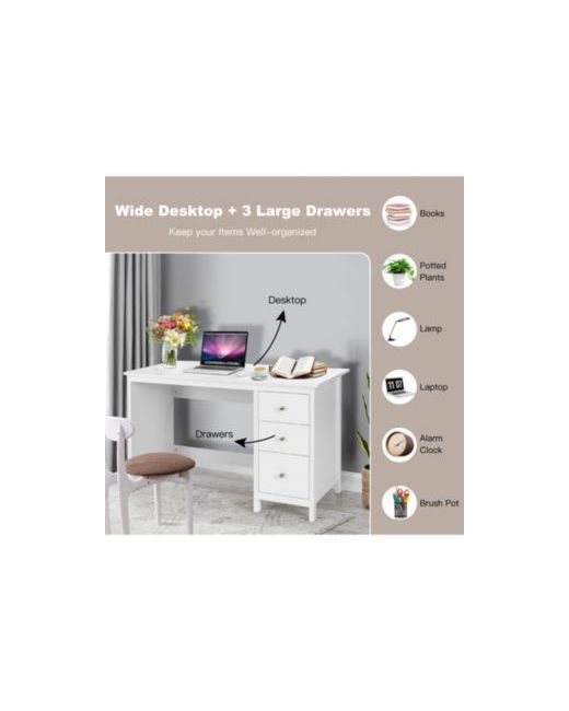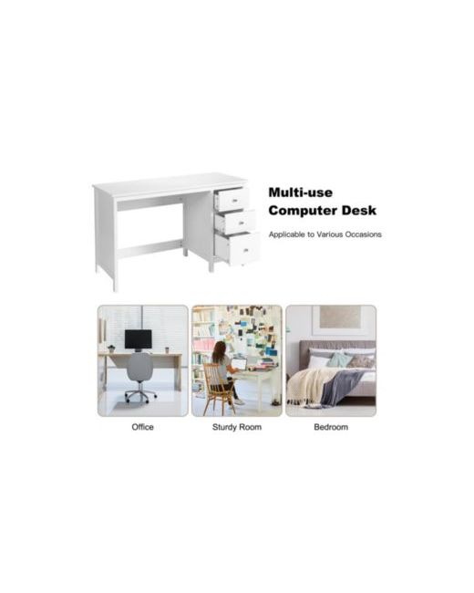 Enhance your workspace with this modern computer desk featuring three accessible side drawers and a spacious tabletop for optimal organization and efficiency. Crafted from durable high-density board, it offers a wear-resistant surface and strong load capacity. Ideal for work, study, or office use, it s easy to assemble and maintain.