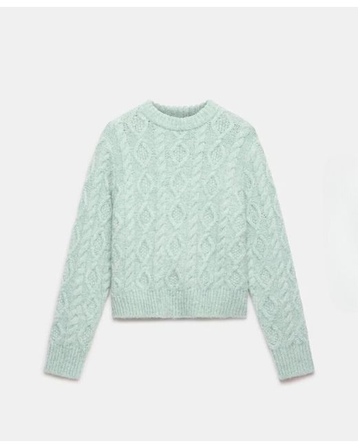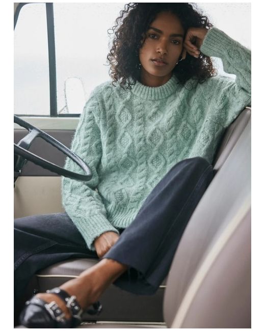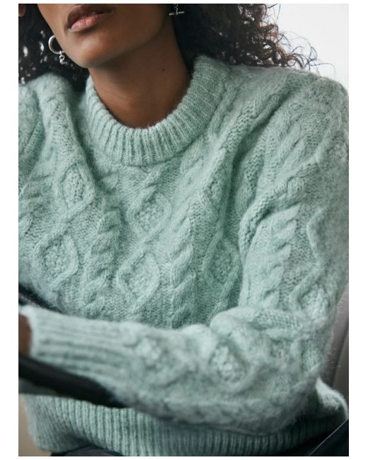 Composition: Main, 20% acrylic, 20% alpaca, 36% polyamide, 24% wool. Green tone cable knit jumper with a crew neckline, long sleeves and ribbed trim.