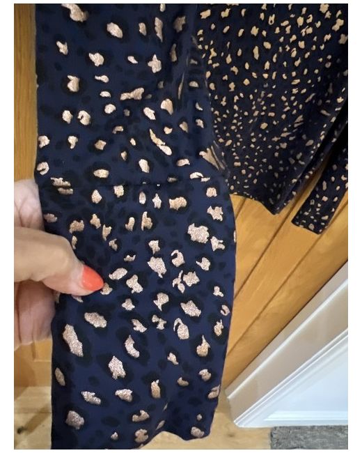Deep cuffs and fitted hemline. Rose gold pattern.