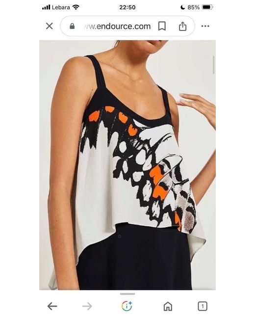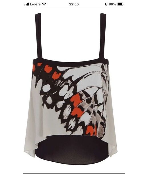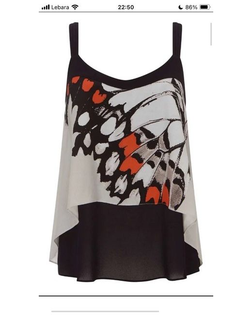 Brand new with tags The Arden print combines bright-orange, stone-grey and faded-black motifs to replicate the beautiful patterns found in butterfly wings. This delicate cami is constructed with asymmetric layers of fluid chiffon, suspended from a black crepe V neckline. Handwash Viscose 100% Trim: Viscose 100%