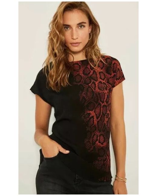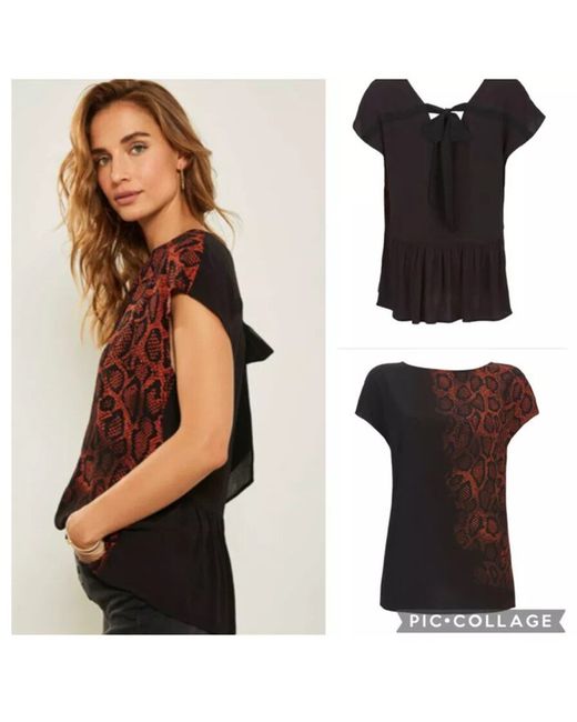 Mint Velvet Gorgeous Snake Print Top Size 16. Featuring an asymmetric rust-hued snake print, this top is cut from fluid black crepe in a loose-fitting silhouette. It's framed by a wide neckline and short sleeves, and is finished at the back with loose ties and a ruffled hem. The length from the side neck point to the front hem measures 68cm/26.5in Pit to pit is 22 inches across. New without tags, bought but never worn. Handwash Viscose 100% 2nd Fabric: Viscose 100% Trim: Polyester 100% SMOKE AND PET FREE HOUSE. ALL ITEMS ARE POSTED VIA ROYAL MAIL SIGNED.