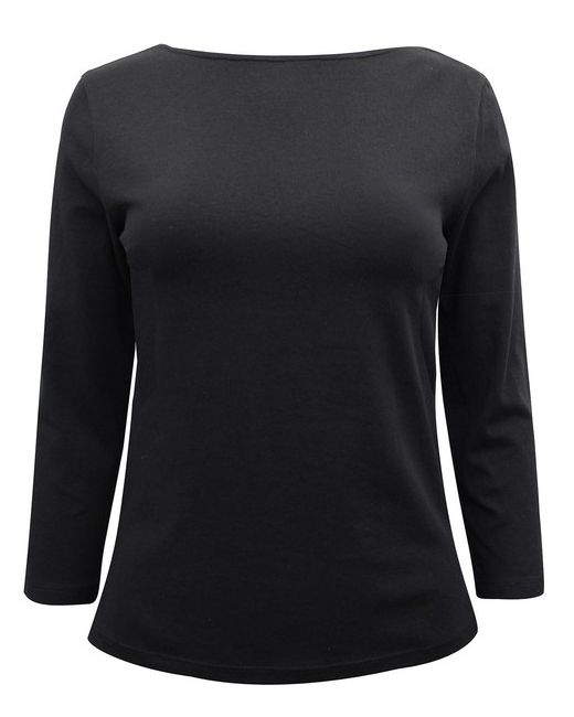 Black Cotton Slash Neck Fitted Top. Upgrade your basics with these soft, cotton rich, boat neck top, 3/4 sleeves with a close-to-the-body fitted cut. Care: Machine Wash.