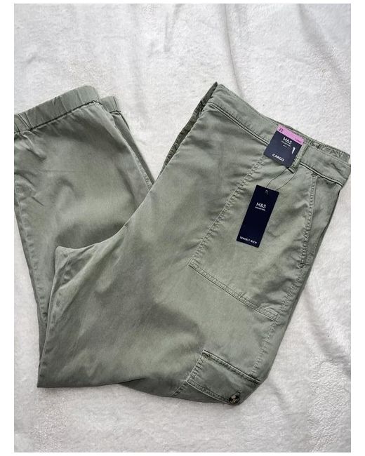 Women's Khaki Marks and spencer MS Tencel Cargo Trousers Elastic Waist 22 24