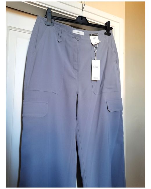 MS Cargo Trousers Light Slate Wide Leg-Polyester-UK 18 EU 46 L 27 NEW