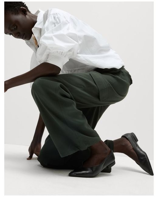 Marks & Spencer. These cargo trousers are crafted from lightweight material to give a breezy feel. Easy wide-leg design, with a neat button fastening and a high elasticated waistband for comfort. Two side pockets and two on the leg provide a handy finish.