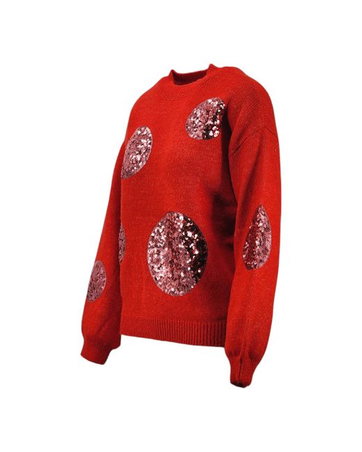 Add a spot of sparkle to your outfits with this sequin jumper featuring giant polka dots. It's made in a regular fit, with ribbing at the crew neck, hem and cuffs. A dash of wool in the knit adds extra warmth.
