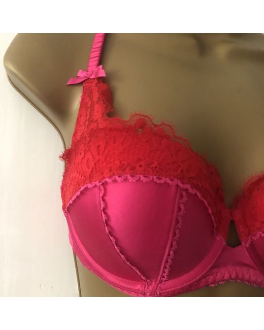 Women's Pink Red Lacey Bra 30 DD