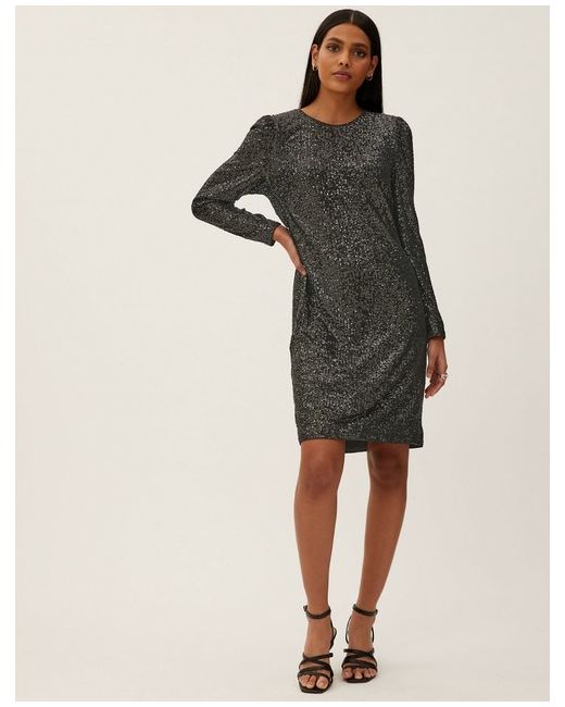 Sequin Black Knee Length Shift Dress. Sparkle all through the festive season in this sequin shift dress. Plus, there's added stretch in the fabric to let you dance the night away. Size 16 Regular ( 16R ).