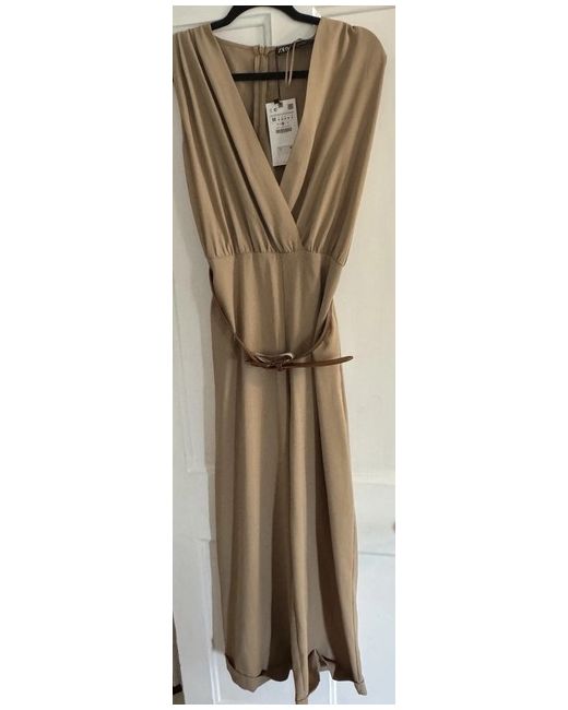 The Zara Beige Jumpsuit in Size M is a stylish and versatile one-piece outfit perfect for casual occasions during the summer season. Made from machine washable fabric, this regular fit jumpsuit features a beige colour and a flattering silhouette. With a classic design and no pattern, this jumpsuit is a wardrobe essential for women looking for a chic and comfortable clothing option. The Zara brand ensures quality and trendy style, making this jumpsuit a must-have for any fashion-forward woman.