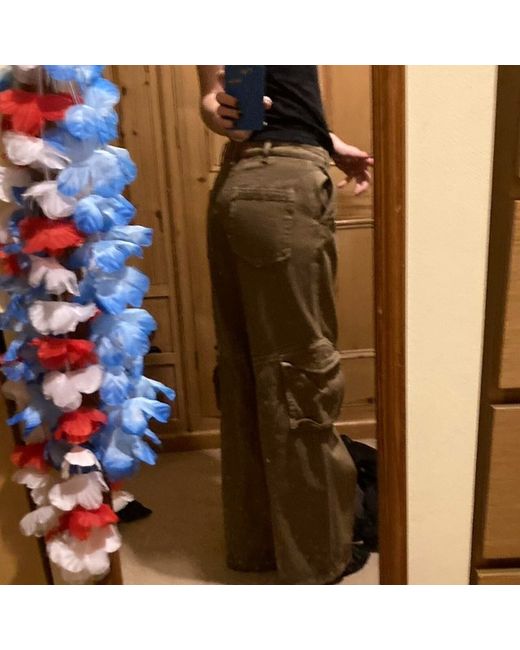 Khaki low-rise cargo pants from zara #y2k #grunge.