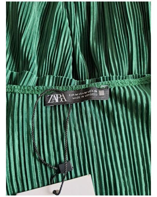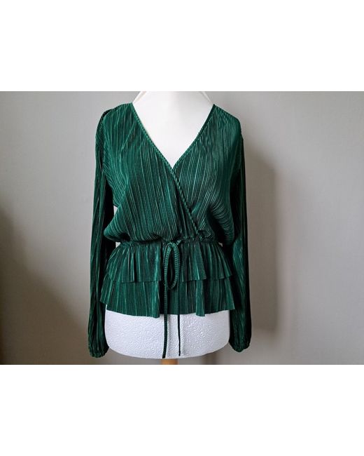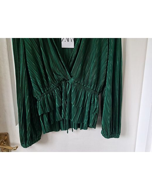 New with tags emerald green Zara blouse. Lightweight ribbed texture. Long bell sleeves. Wrap-style v-neck with drawstring peplum detail. New with tags, never been worn. Zara size medium.