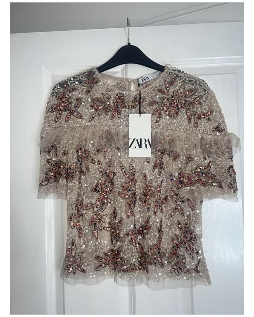 Beaded Tulle Blouse Glitter Top Embellished Sequin Xs 120 New
