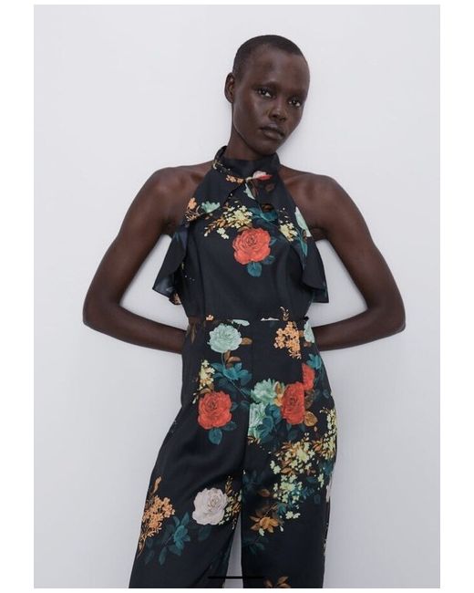 Zara Floral Print Jumpsuit with ruffle trims and cut out detail on the side of the waist. Fastening on the back with invisible zip, opening and tied detail. Size S UK. Condition is New with tags. Dispatched with Royal Mail 2nd class