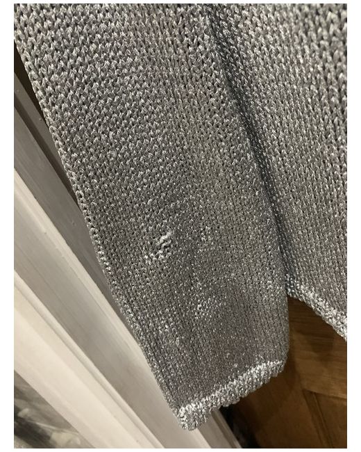 Silver shimmer fabric in cable knit design Delicate fabric, can snag easily X2 very slight nicks (as pictured) can only see on garment inside out Any questions please just ask😊