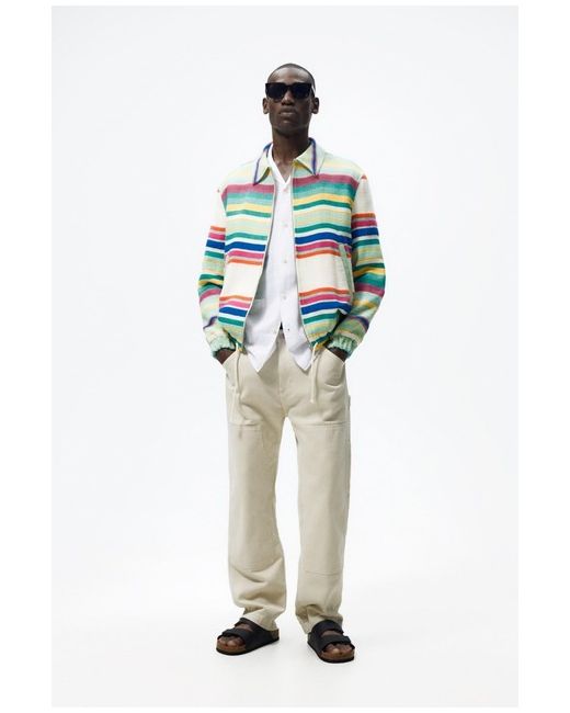 Zara presents a multicoloured collared jacket in size L, designed with long sleeves and welt pockets at the hip. Featuring elastic trims for a snug fit, this basic jacket is suitable for both men and women. Crafted from polyester, this outerwear exudes a stylish appeal for everyday wear.