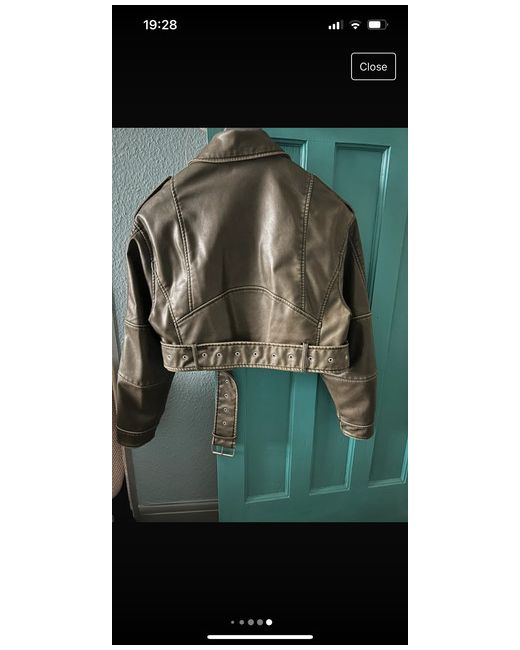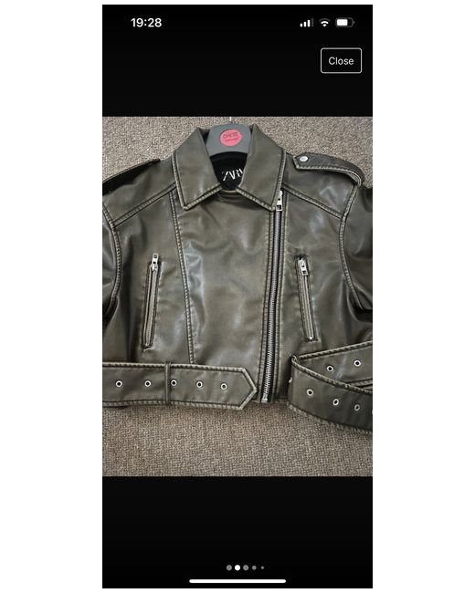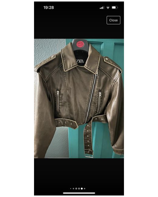 Add a touch of style to your wardrobe with this gorgeous green Zara women's leather jacket. Crafted from high-quality microfibre fabric, this mid-length jacket features a full zip and belted waist for a flattering fit. The jacket also comes with pockets for added convenience. Whether you're dressing up or dressing down, this jacket is perfect for any occasion. The lightweight design makes it comfortable to wear, while the polyester lining ensures that you stay warm in colder weather. This jacket is a must-have for any fashion-forward woman who wants to look her best. It’s in excellent condition and only been worn 2 times but have a slight tear in the inside which can’t be seen when worn