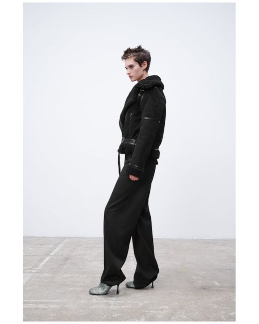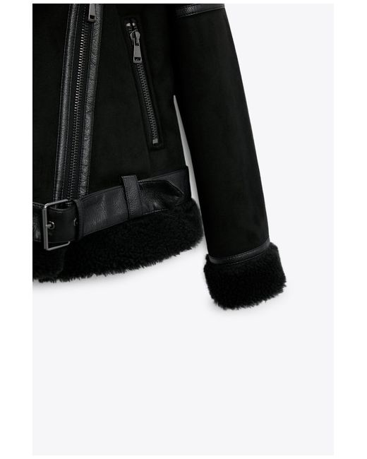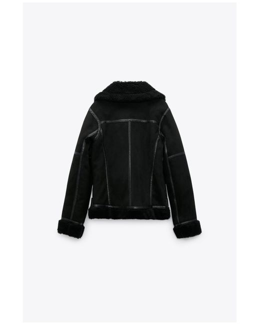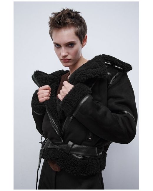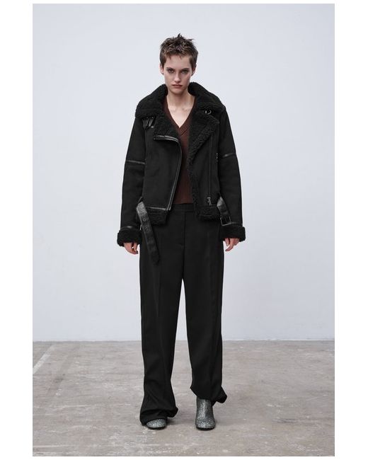 OUTER SHELL. Featuring front zip pockets, contrast faux shearling fabric detail, double-breasted zip fastening at the front and a belt at the hem. 100% polyester. 55% polyurethane · 45% polyester.