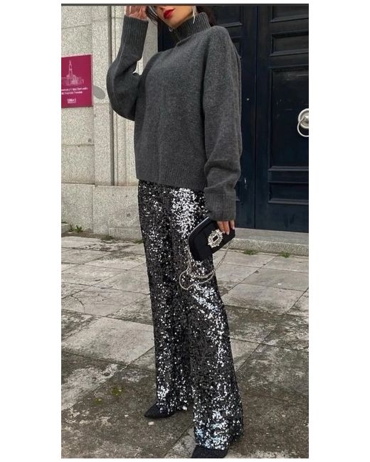 ZARA NEW FLARED SEQUINNED LEGGINGS DARK SILVER SIZE M REF: 9860/222. Condition is New with tags. Dispatched with Royal Mail Tracked 48.