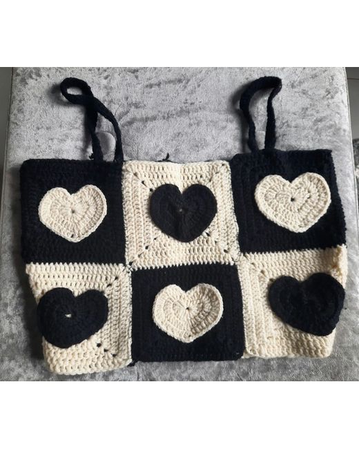 crochet crop top sleeveless top handmade items made of woolen white and black in colour