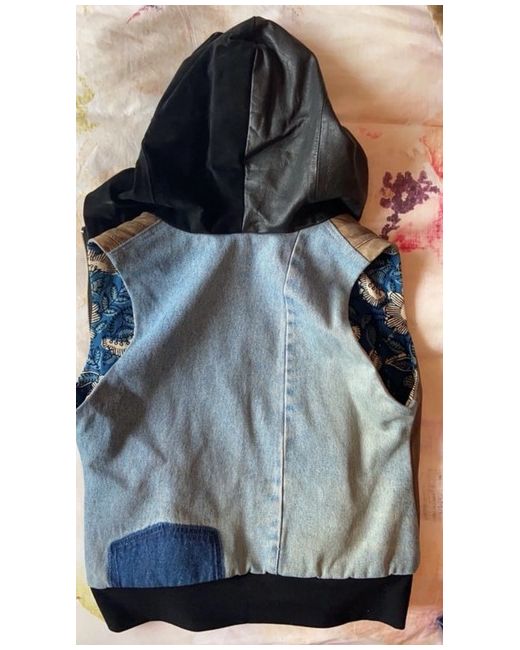 Hand painted with chunky hand knitted sleeves vintage style denim jacket
