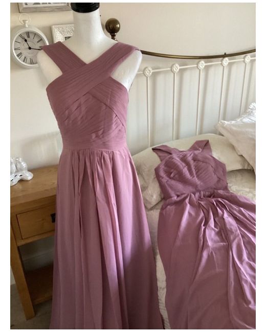I have for sale 2 beautiful bridesmaids/prom/evening dresses size 10 rose pink. The advertised price is for 2 dresses. Length 53” from top zip down.