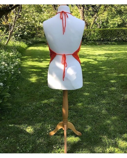 Handmade Crochet Boho Orange Halter Neck Top - Size 8-16. 100% cotton. Machine wash wool/gentle cycle. Do not tumble dry.