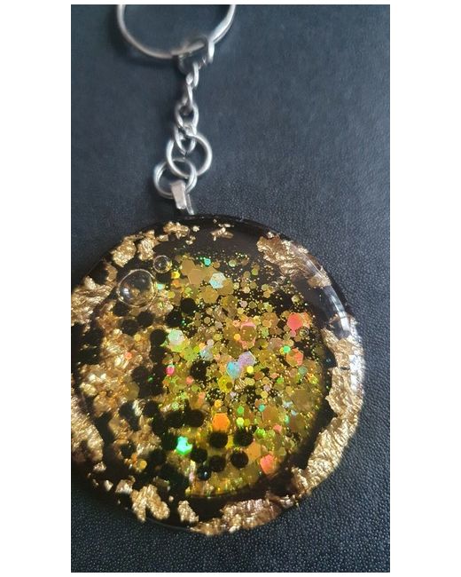 Black Round and GOLD Shaker Keyring By GlitzyByLita From Resin With Sparkly