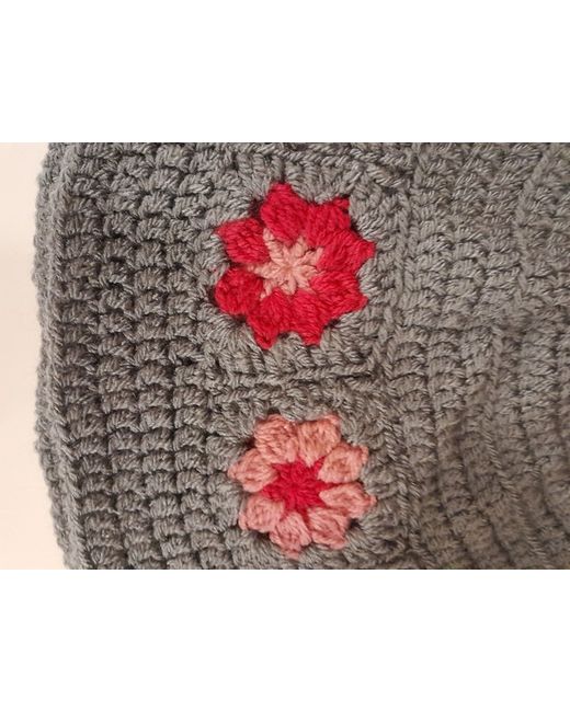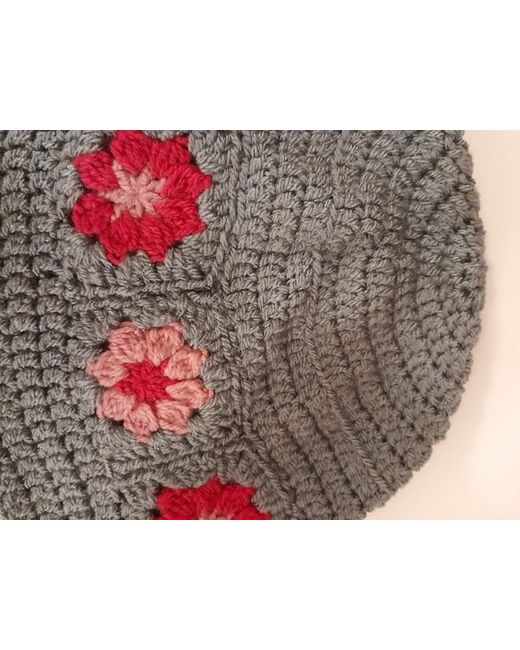 Handmade grey and pink crochet granny square hat with brim Made with acrylic yarn