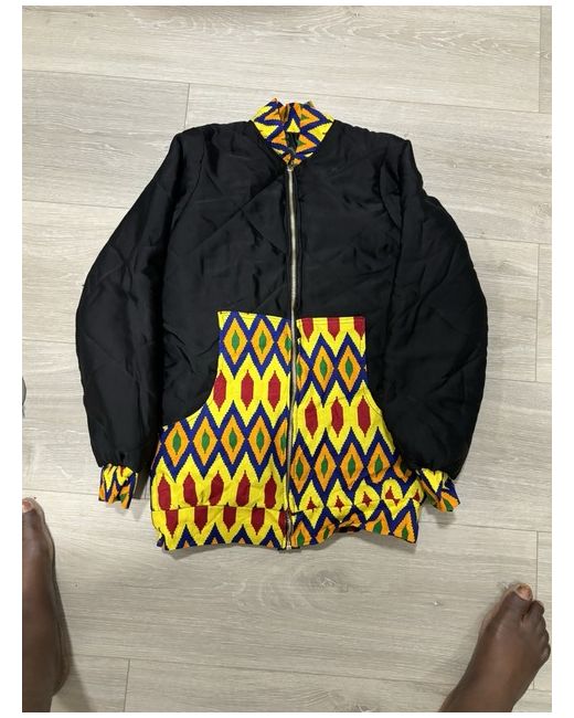 This Ankara Jacket is a handmade bomber jacket with a unique design. It is made of cotton with long sleeves and a zip closure, suitable for casual occasions. Available in various sizes and colours, this unisex jacket has a regular fit and is crafted in Nigeria and its available to be deliver anywhere in united kingdom