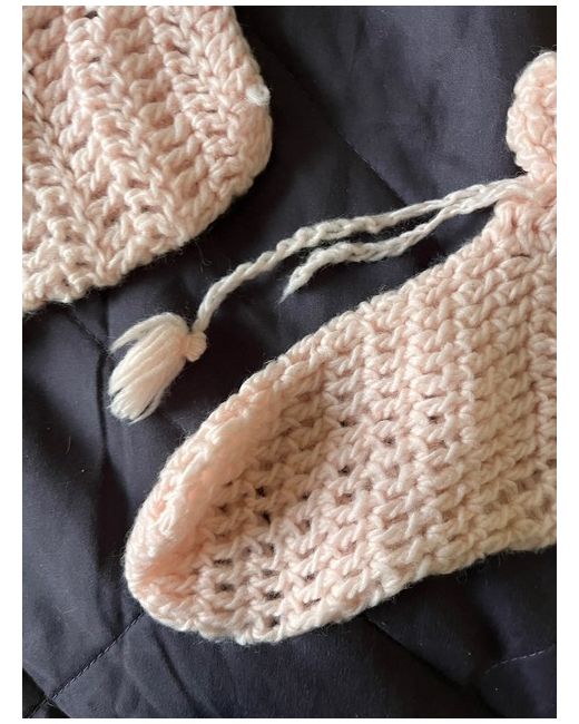 Women's Pink Hand-knitted 70s Bed socks. Missing One Tassel. S-M.