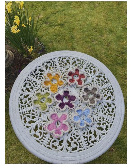 Handmade by me! Large crochet flower scrunchie. I can make different colour combinations. If there’s something specific you’d like, message me and I’ll see what I can do :)