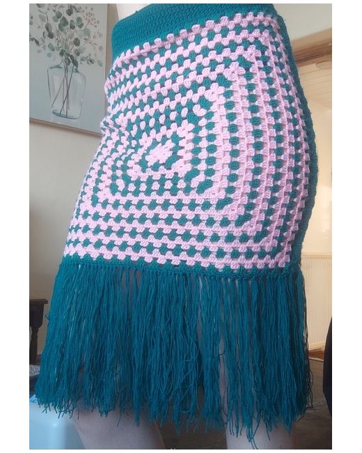 Add a touch of bohemian flair to your wardrobe with this stunning turquoise and pink crochet skirt. Handmade with love, this skirt features a beautiful pattern that adds texture and depth to the design. Perfect for any season, this knee-length skirt is made from a comfortable cotton blend fabric that is both soft and durable. Whether you're headed to a festival, the beach, or just looking to add some artistry to your wardrobe, this reversible skirt is the perfect choice. The fringe detail and straight pencil style provide a unique and stylish look that is sure to turn heads. So why wait? Add this beautiful crochet skirt to your collection today!