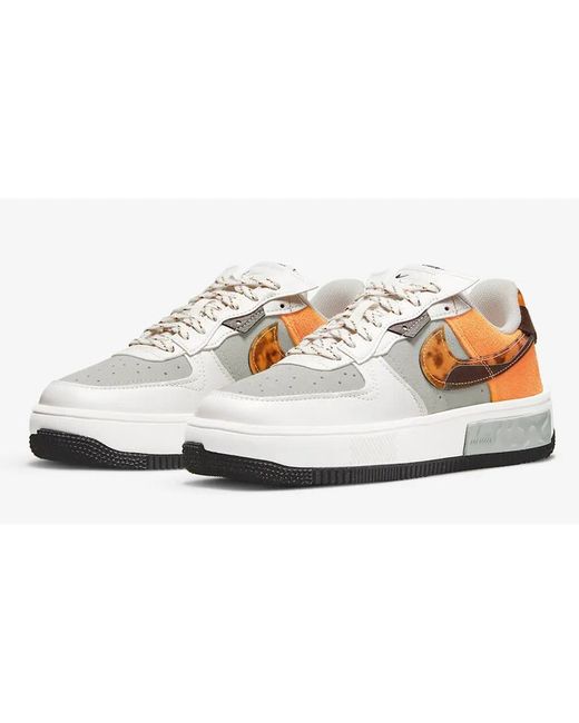 The Nike Air Force 1 Fontanka dons a nice mix of grey and orange with a touch of tortoiseshell. A dove grey suede dresses up the base while smooth white leather takes over on the toe cap and the eyestay panel.