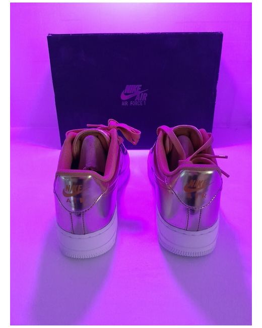 Elevate your shoe game with these Nike Air Force 1 sneakers in a stunning metallic gold colourway. The trainers are designed with a sleek and trendy style, perfect for women who want to make a fashion statement. The UK shoe size is 8 and the model is Nike Air Force 1, making it a must-have for any sneaker enthusiast. These trainers are ideal for any occasion, from a casual day out to a night on the town. The gold colour adds a touch of luxury and the Nike brand ensures quality and durability. These sneakers are perfect for women who want to add a touch of style to their wardrobe.