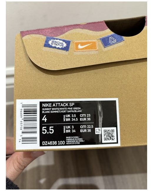 The product is a pair of Nike Mac Attack x Social Status trainers in UK size 3.5, designed specifically for women. These sneakers feature a sleek white colour and standard shoe width, making them a stylish and comfortable choice for everyday wear. With the collaboration between Nike and Social Status, you can expect high-quality design and craftsmanship in this unique and fashionable footwear option.
