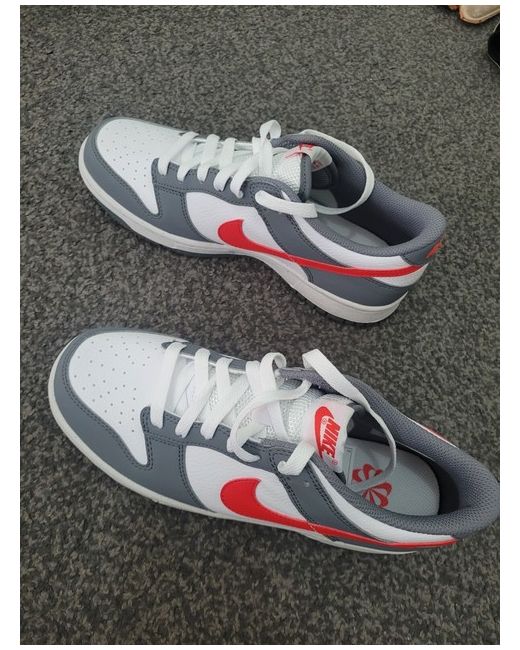 Brand new in box Nike Dunk Low in white/grey/red. Size 5.5 my daughter bought the wrong size and didn't return them.