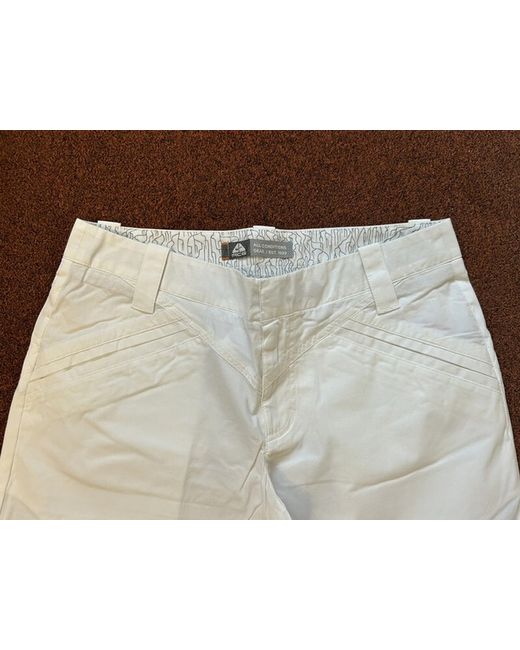 Nike Womens ACG(All Conditions Gear) trousers in white. Drawstrings at the ankles let you gather them up to add ruched ankle interest or let them loose for a simple straight-leg look. Loose Fit Low Rise Nike Grind Trims Material: 98% Organic Cotton, 2% Elastane